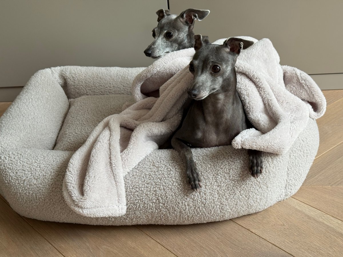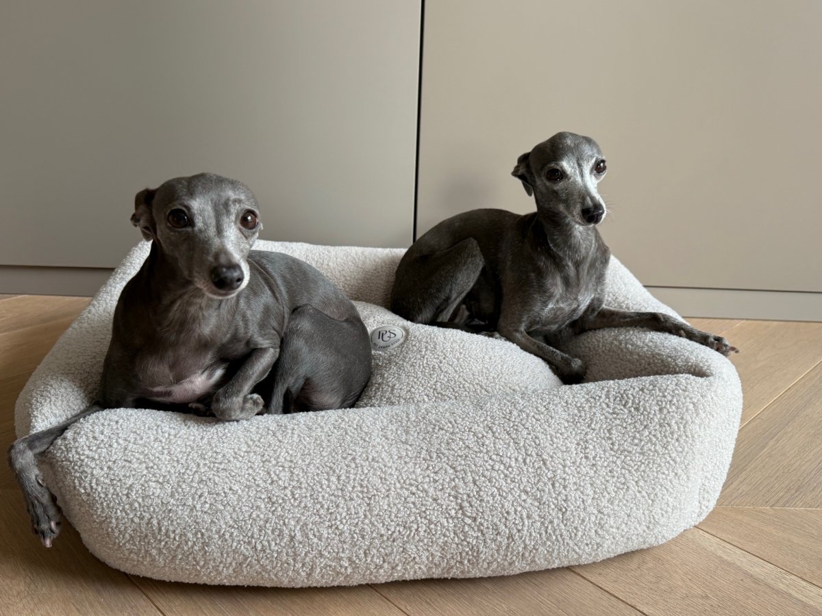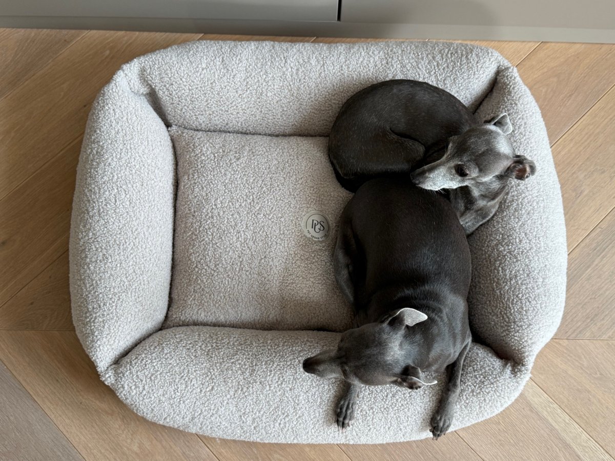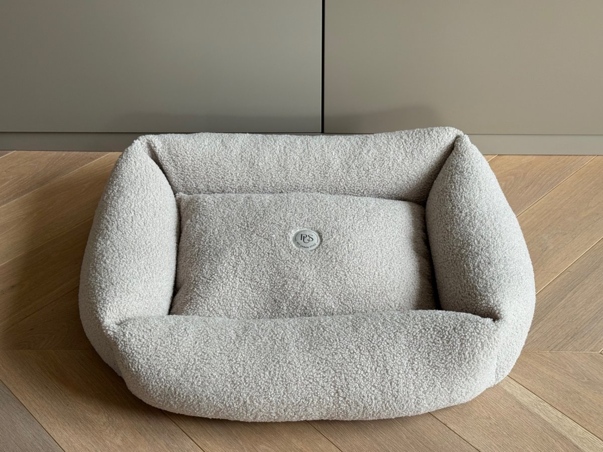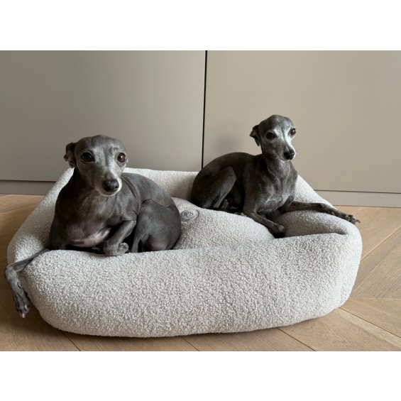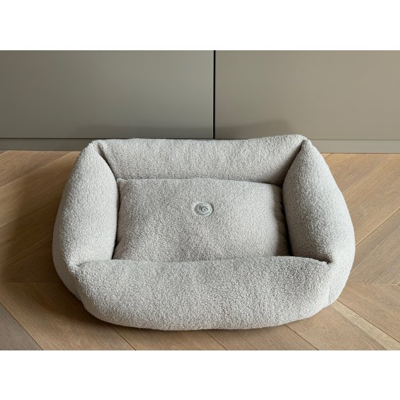 A modern and simple bed that fits perfectly into the style of your interior. Made with beige teddy fabric, it is extremely comfortable for your dog and very practical to use. Equipped with a soft central cushion and 4 side cushions. The removable cover is machine washable. The bed is available in 3 sizes.